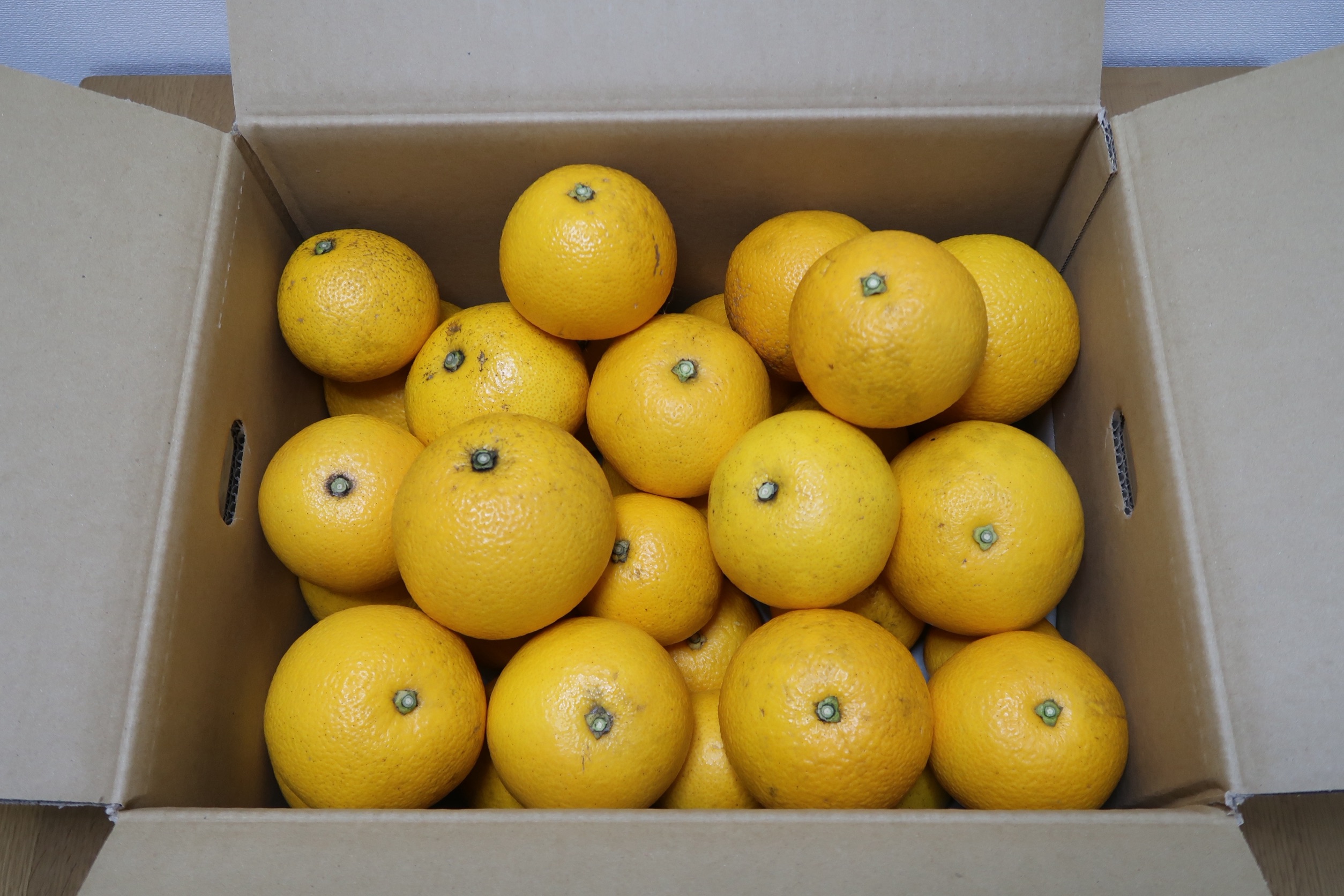 12月下旬頃より順次収穫しています、収穫後すぐは酸味がありフレッシュな風味で、追熟すると段々と酸味が抜け甘味へと変化していきます。